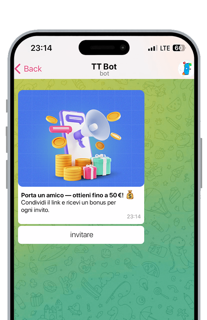 Invita i tuoi amici e guadagna 3 € per ogni referral.